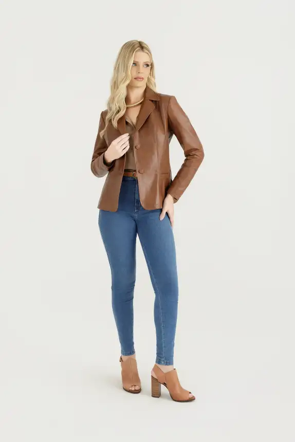 Jaqueta de Couro Estilo Blazer - Elegância Atemporal